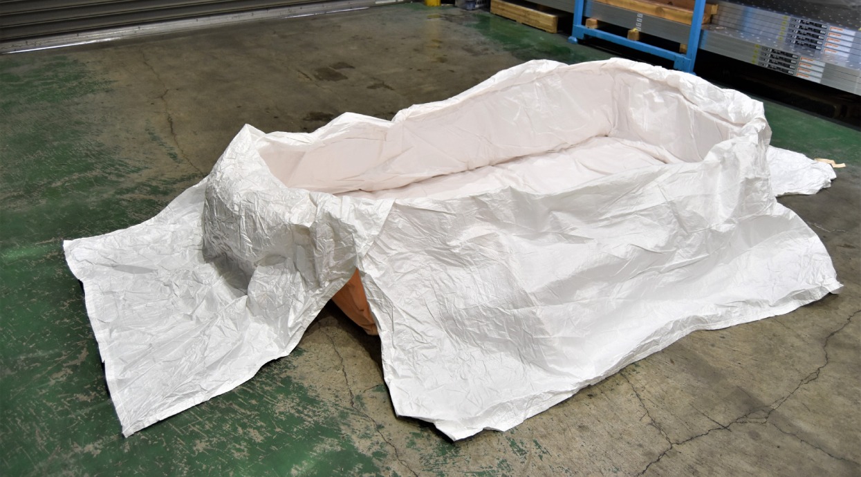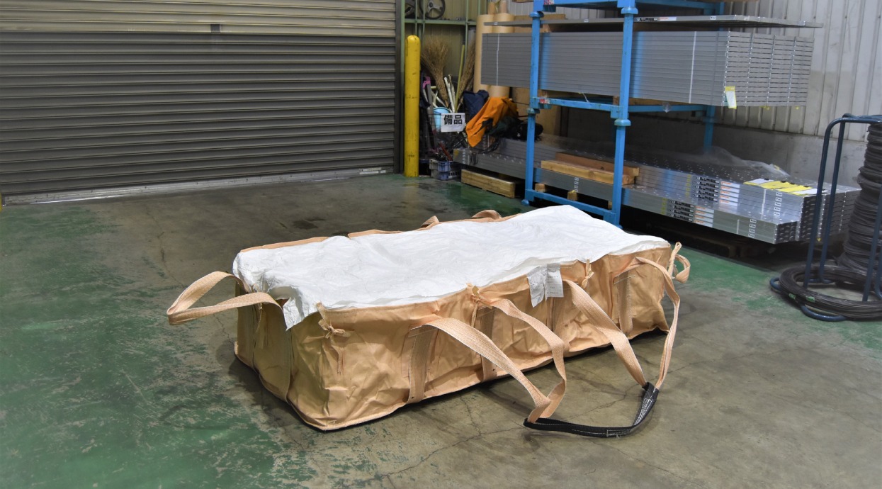 本体と底部がPP(表生地)とPE(裏生地)の二重構造になっているので、アスベストを含むスレート板を運搬するのに最適です。※ アスベスト廃棄レベル3対応